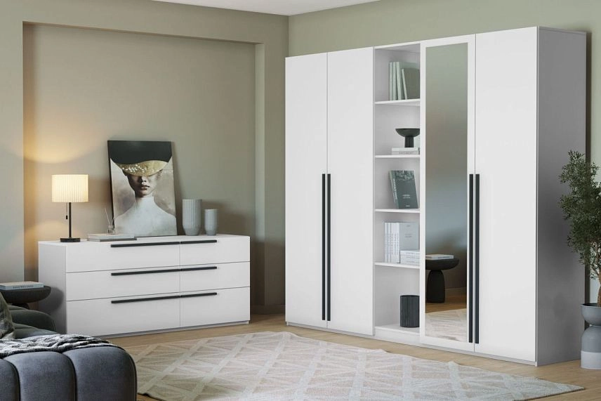 Комплектация: ручка Лорена 1000мм арт. 39212, петли без доводчиков, шариковые направляющие 100% выдвижения