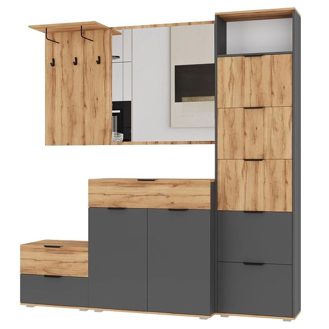 Комплектация: ручка мебельная торцевая 128 мм, черный RT110BL.1/128/150 BOYARD, арт.719962-2; крючок мебельный однорожковый ВМ-2 металлический черный АЛДИ, арт.07219; опора мебельная регулируемая прямоугольная №6 54*54*20 мм металлик АЛИДИ, арт.10196; шариковые направляющие, вешалка-кронштейн 192*75ММ черная АЛДИ, арт.07192