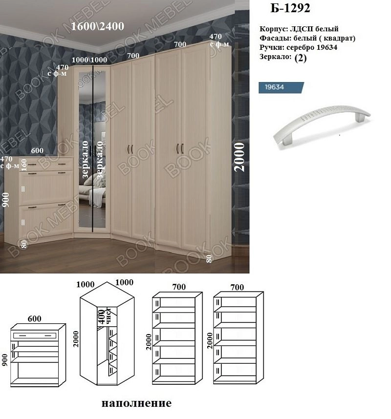 | Шкаф угловой 2 дверный (4 пачки) | 350 | 800 | 600 |
