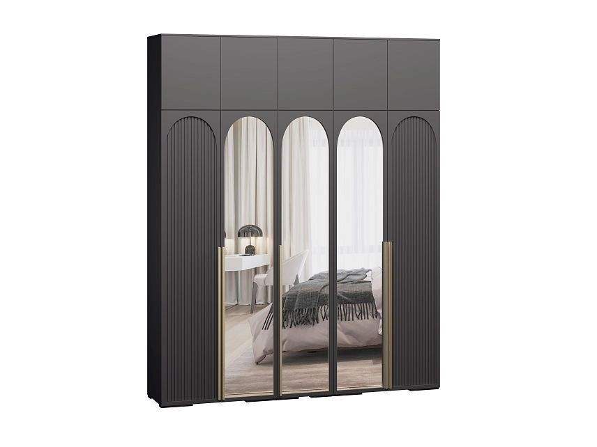 - Шкаф распашной Брей-5 Хит с антресолью с зеркалами Черный