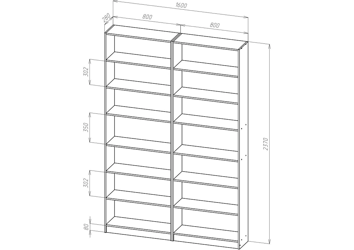 | Книжные шкафы, стеллажи от 600 мм до 1000 мм | 350 | 1000 | 600 |